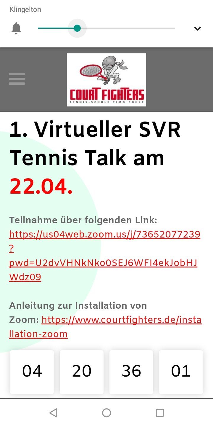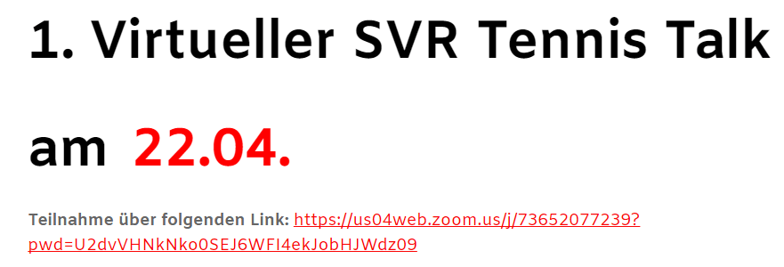 Die einzelnen Veranstaltungen des "Virtuellen SVR Tennis Talks" werden über die Kollaborationsplattform Zoom