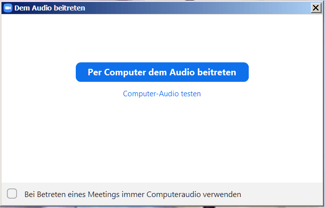 - Schließlich müsst ihr noch bestätigen, dass ihr mit eurem Computer-Audio-System teilnehmen wollt (Bild 5)