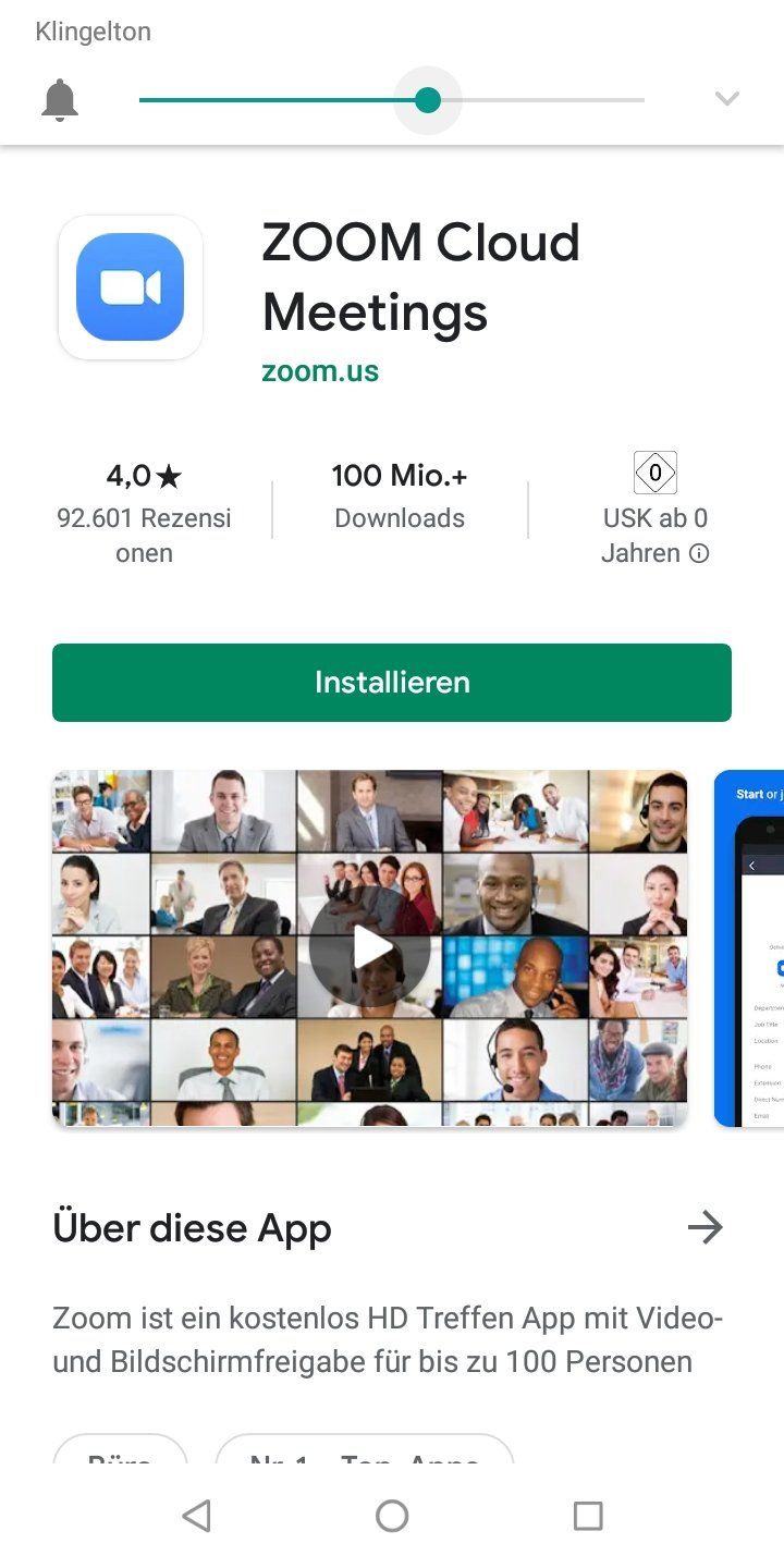 - Ladet euch die ZOOM Cloud Meetings App aus eurem AppStore (Bild 1)